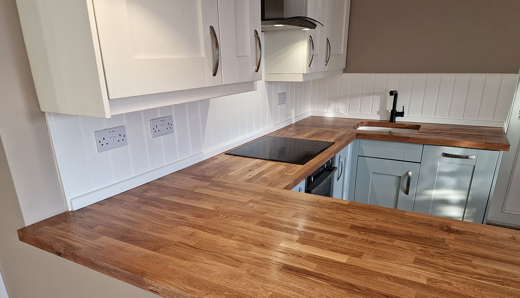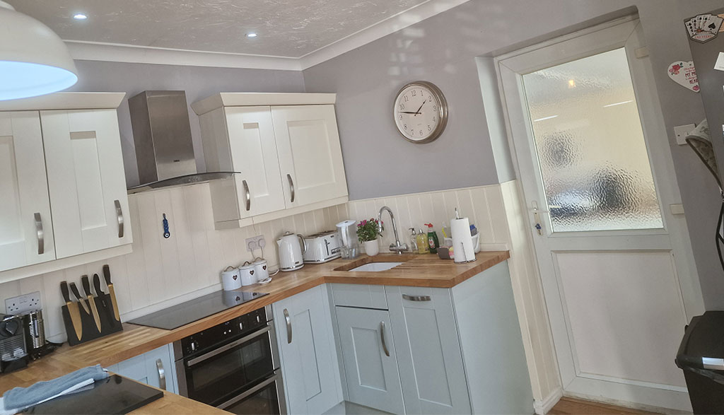 We expertly resolved a chimney problem caused by leaks and resulting dampness. Our comprehensive solution involved the removal of the chimney, which was no longer in use. To complete the project, we skillfully replastered and adorned both the lounge and kitchen areas, giving special attention to refurbishing the elegant oak worktops.