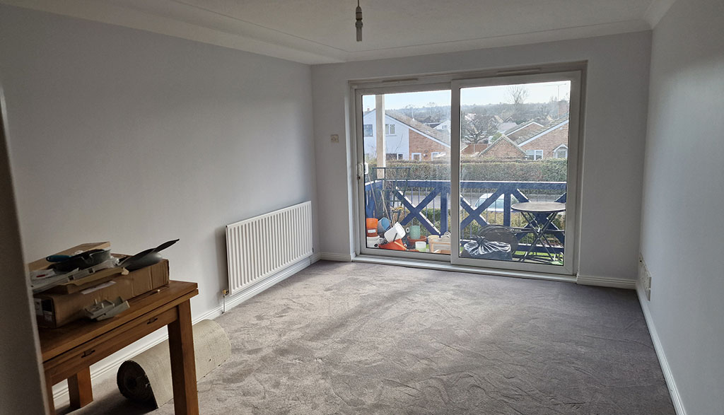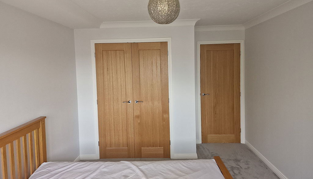 We sprang into action to address the flood damage caused by the flat above. Our comprehensive restoration project included renovating the lounge, bedroom, entrance, and the installation of a brand new kitchen. This involved replacing damaged chipboard subflooring, skillfully skimming walls, and installing new oak doors throughout. We also installed a new kitchen and upgraded the flooring, resulting in a complete transformation of the space. The entire area was expertly decorated to achieve a fresh, revitalised look.